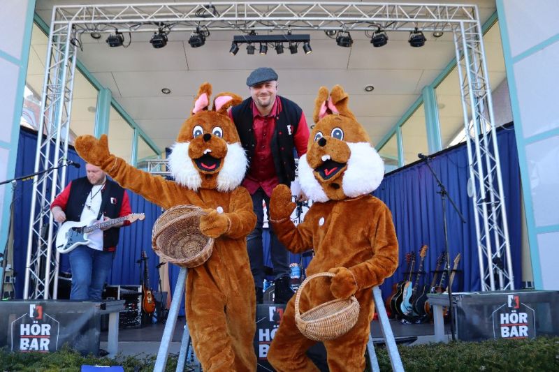 Mit zunehmender Besucherzahl übernahm Moderator Michael Bockelmann das Mikrofon und führte durch den Nachmittag. Musikalisch begleitet wurde das Fest von der Band „Hörbar“ aus dem Emsland, die bereits am Vortag als Walking Act durch die Straßen gezogen war und vor den inhabergeführten Geschäften spielte. Mit bekannten Liedern, kleinen Tanzeinlagen und viel Gespür für das Publikum sorgten sie auch auf dem Kurplatz für beste Stimmung. Wer wartete, wartete nicht einfach, sondern war mittendrin im Geschehen.