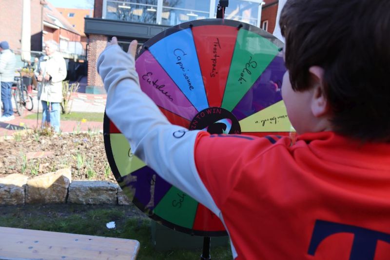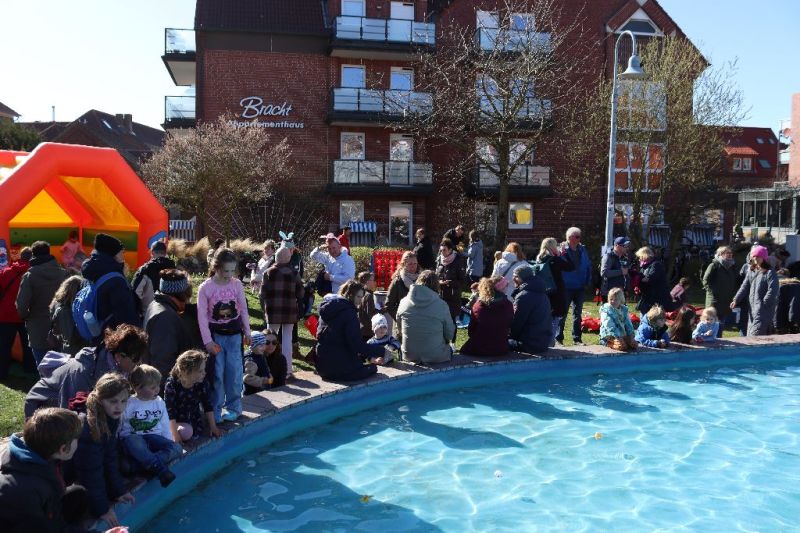 Über 870 Lose waren bereits im Vorfeld in den teilnehmenden Geschäften des Einzelhandels verkauft worden. Da jedes Los gewinnt, bildete sich schnell eine Warteschlange an der Gewinnausgabe. Gleichzeitig wurde es auch rund um den Schiffchenteich lebendig. Neben den Spielstationen und der Hüpfburg, an denen ausführlich getobt und gespielt wurde, schwammen dort immer wieder kleine Entchen, die von den Kindern geangelt und mit nach Hause genommen werden konnten.