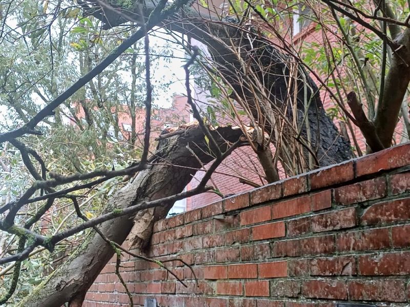 Lediglich in der Lohne, die von der Carl-Stegmann-Straße über die Wilhelmstraße bis zur Friesenstraße führt, ist auf dem Grundstück vom Appartmenthaus "Bracht" ein Baumstamm gebrochen, der Baum kippte in die Lohne, womit diese erst einmal dicht war.