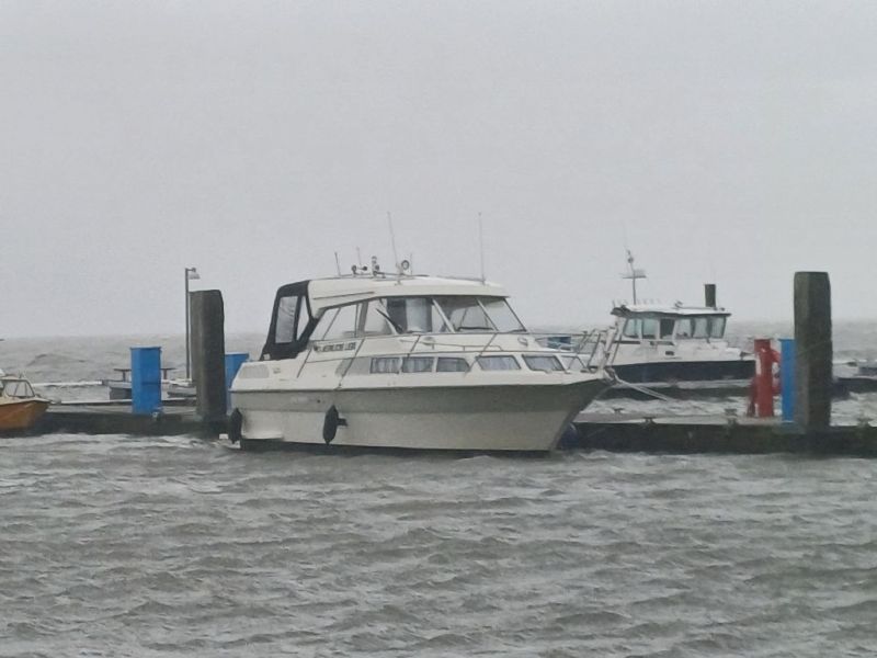 Die "Töwi II", die von Reeder Schmidt selbst gefahren wird und daher auf Juist liegt, konnte einen Liegeplatz am Anleger der Reederei Norden-Frisia benutzen, weil das Schiff dort geschützter und ruhiger lag als am Anleger der Töwis.