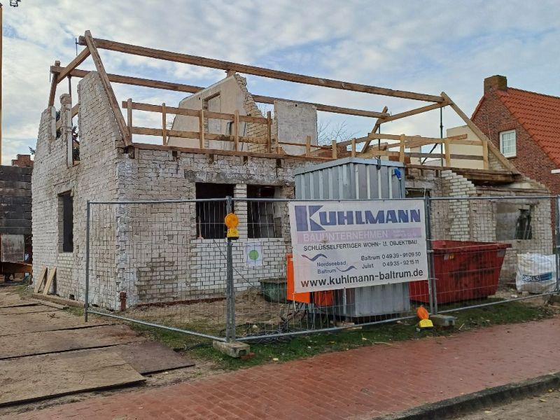 Unser Foto oben auf der Startseite zeigt den ehemaligen „Forkenhannes“ vor einigen Wochen, als das Haus für die Erstellung der Ferienwohnungen entkernt wurde.