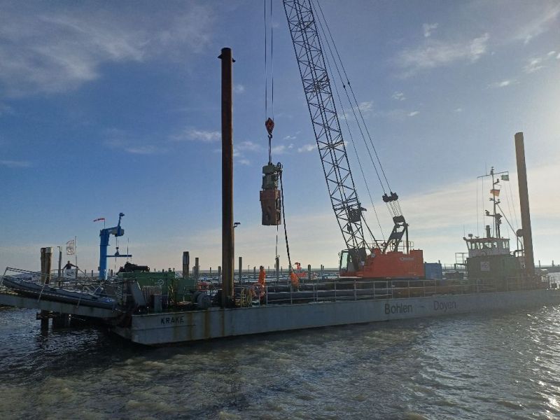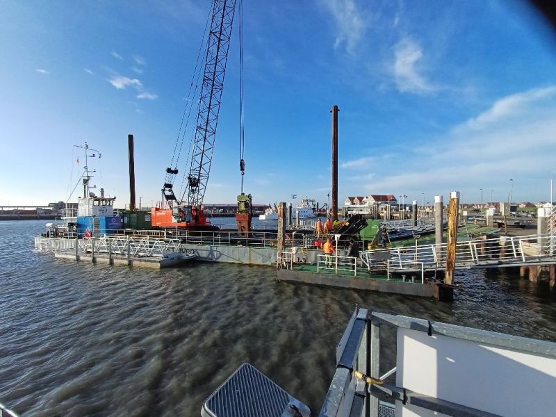 Ein paar Tage später, am 24. November, kam das Arbeitsschiff „Krake“ der Wasserbaureederei Bohlen & Doyen aus Wiesmoor nach Juist, um die alten Pfähle zu ziehen und neue zu setzen. Danach konnte der neue Ponton dort verankert und in Betrieb genommen werden. Er bietet für die Seenotretter einige Vorteile, insbesondere die neue breitere Gangway auf den Steg, weil man jetzt Krankentransporte mit Trage, Rollstuhl etc. sehr viel besser zum Rettungsboot bekommen.