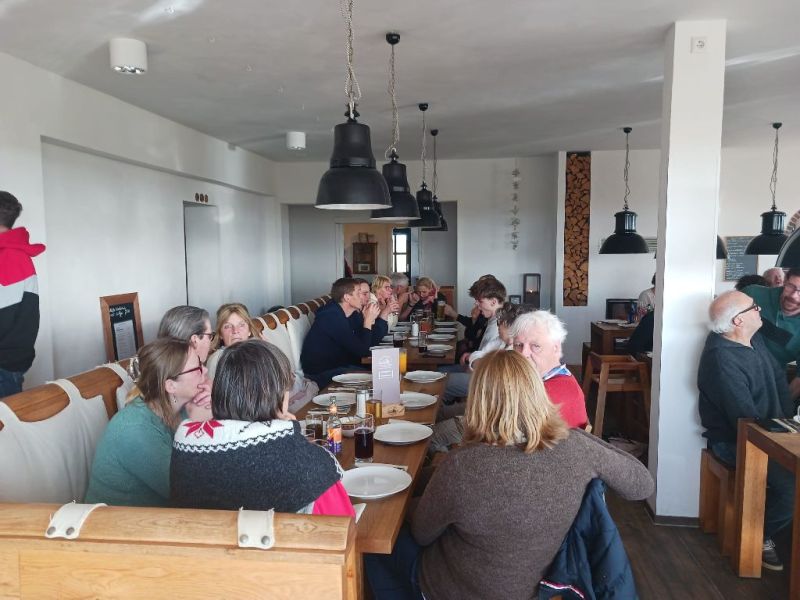 Auf der „Domäne Bill“ gab es wieder einen hervorragenden Grünkohl von Familie Ahrends und Team. Thomas Fisser hatte sein Akkordeon mit und spielte vor dem Essen zwei Lieder, die schon mal zur Einstimmung für das Insulanertreffen am nächsten Wochenende gut waren („Die Sieben zum verlieben“ und „Ich möcht so gern mit Dir allein…“).