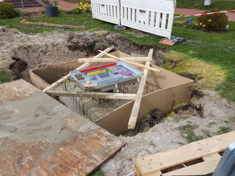 In unserer letzten Ausgabe haben wir bereits von den Arbeiten auf dem Kurplatz berichtet, wo eine neue und verbesserte Standmöglichkeit für den Maibaum erstellt wird. Am vergangenen Samstag wurden die umfangreichen Betonarbeiten durch ein Juister Baugeschäft durchgeführt, jetzt kann der Baustoff abbinden, und damit wird die Halterung am Monatsende zur Aufstellung des Maibaumes zur Verfügung stehen. Die ersten beiden Fotos entstanden während der Arbeiten.