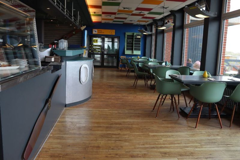 Wer das Flugplatzrestaurant auf Juist betritt, steht nicht einfach in einem Gastraum. Die Eingangshalle erinnert mit original Sitzen und Gepäckfächern unmittelbar an das Innenleben eines Flugzeuges, während sich im weiteren Restaurant zahlreiche Details aus der Luftfahrt wiederfinden und den Ort prägen.