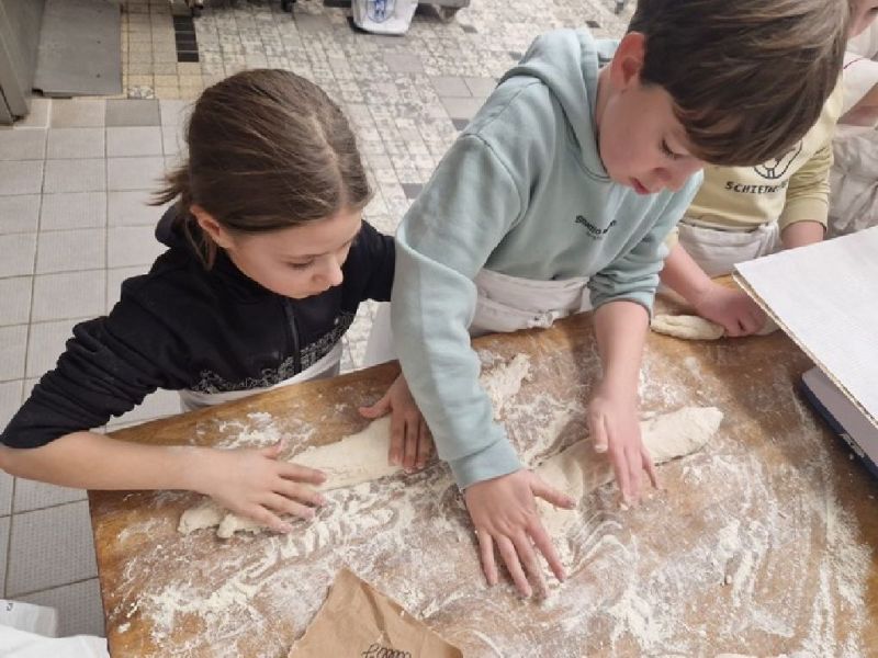 In der Backstube formten die Kinder Brote und Baguettes und beobachteten, wie diese im Ofen gebacken wurden. Auch die kleineren Kinder durften an einem weiteren Tag ihr eigenes Brot formen.