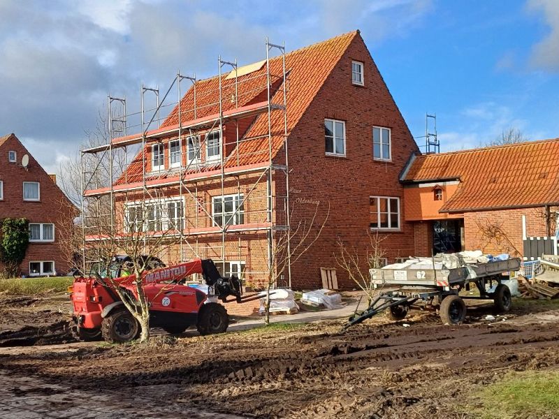 Blicken wir ins Loog, einzige Baustelle dort ist das Haus „Oldenburg“ in der Hammerseestraße. Die Pläne, dort den Loogster Lebensmittelladen zu errichten, wurden ja bereits in vergangenen Winter zu den Akten gelegt, nachdem die Firma Gillet den bisherigen Laden kaufen und grundlegend sanieren konnte (wir berichteten). Im Haus „Oldenburg“ sollen jetzt aus den Zimmern kleine Wohnungen für die Mitarbeiter werden. Dazu wurde das Haus praktisch entkernt. Wenn man gutes Personal auch längerfristig an den Betrieb binden möchte, sind entsprechende Wohnmöglichkeiten ein absolutes Muss, so Norbert Gillet im Gespräch mit JNN. Zudem finden – wie schon im Vorjahr im Ladenhaus in der Memmertstraße - umfangreiche energetische Maßnahmen statt. Foto Nr. 3 entstand ebenfalls Mitte November, das nächste Foto wurde aktuell vor Weihnachten aufgenommen.