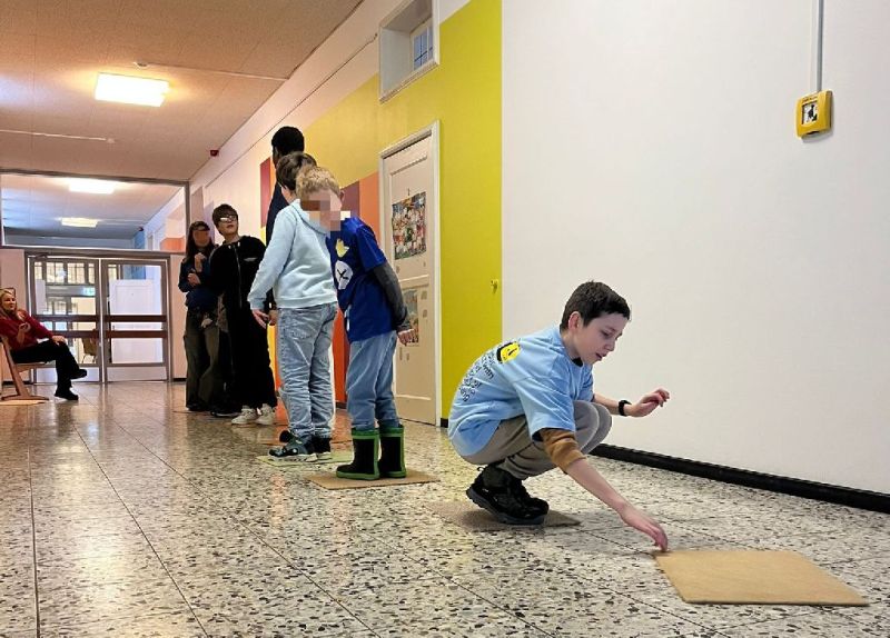 So verpackten die Gruppen Eier in verschiedenen Materialien und schmissen diese von der Außentreppe auf den Schulhof in der Hoffnung, dass das Ei heile landen würde. Es wurden außerdem Begriffe pantomimisch dargestellt, Fragen zum Allgemeinwissen beantwortet und bekannte Orte innerhalb der Schule im Rahmen einer Schnitzeljagd gesucht. Auch ein Bewegungsspiel mit Teppichfliesen und ein Malwettbewerb zum Thema Juist waren Teil des Programms. Die Siegerehrung mit verschiedenen Präsenten verriet schließlich, welche Gruppe bei diesem Fest das Siegertreppchen besteigen durfte.