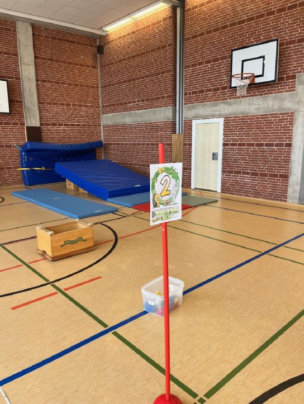 An insgesamt sechs Stationen konnten die Kinder verschiedene Bewegungsaufgaben absolvieren. Die Übungen orientierten sich an grundlegenden motorischen Fähigkeiten wie Laufen, Rollen, Balancieren und Werfen. An jeder Station standen freiwillige Helferinnen und Helfer bereit, die die Kinder unterstützten und motivierten.