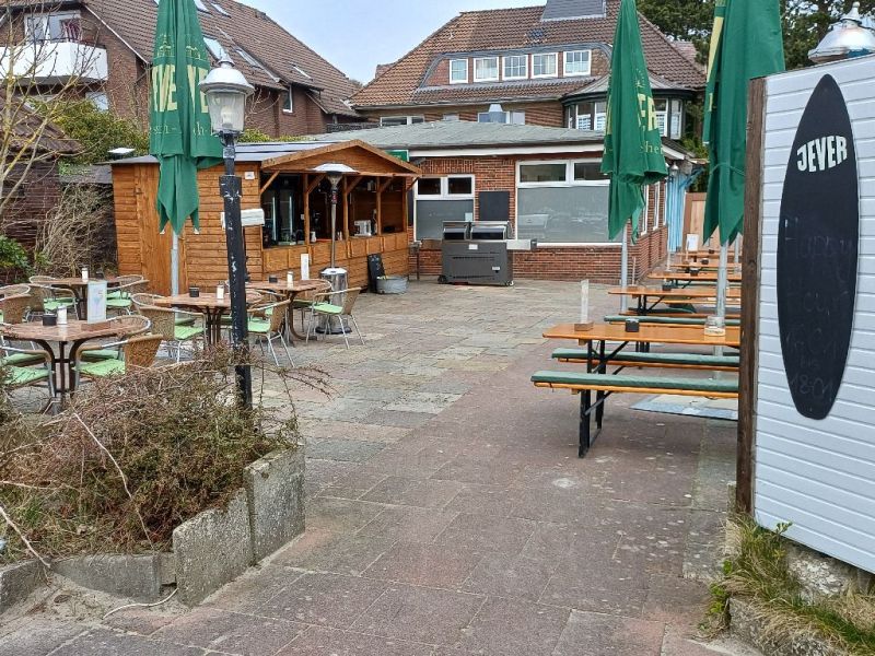 Es gibt aber auch Bauarbeiten, die nicht stattfinden. (Foto Acht) Eine im Vorjahr angekündigte Sanierung vom Tennis-Cafe, damit der Betrieb wieder eine Konzession bekommt, hat bisher nicht stattgefunden. Wie im Vorjahr wurden wieder Festzeitgarnituren, ein Grill und eine Verkaufsbude auf der Terrasse aufgestellt und jetzt wieder eröffnet.