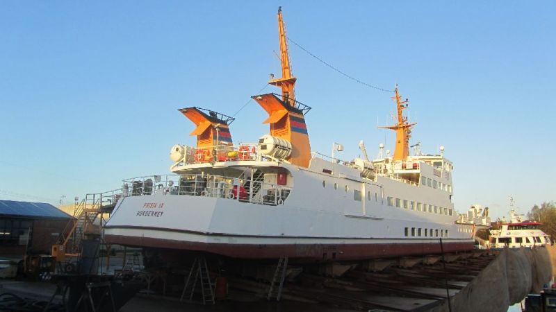 Das Juist-Schiff „Frisia IX“ befindet sich seit dem 27. Oktober in Oldersum auf der Schiffswerft Diedrich. Der Werftaufenthalt ist voraussichtlich bis Ende November geplant.