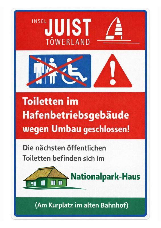 Die öffentlichen Toiletten im Hafenbetriebsgebäude werden endlich saniert. Das bedeutet allerdings, dass während der Sanierung im Hafenbereich keine öffentlichen Toiletten für die Gäste/Insulaner zu Verfügung stehen.