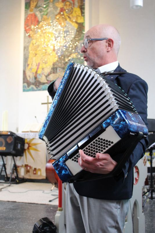 Die Stiftung arbeite vielfältig und facettenreich, stellte Inselpastorin Stefanie Lohmann in einem kurzen Segensgruß fest. Stolz könnte man auf die Leistungen der abgelaufenen 20 Jahre sein und der heutige Tag sei wirklich ein Grund, das zu feiern. Anschließend sangen alle Anwesenden den den irischen Segen „Möge die Straße….“, begleitet von André Ebbighausen auf dem Schifferklavier. Getreu dem Motto „wer jedes Jahr acht Inselbürgermeister zum Singen bekommt, bei dem singt auch ein ehemaliger Bundespräsident.“