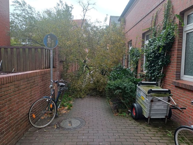 Lediglich in der Lohne, die von der Carl-Stegmann-Straße über die Wilhelmstraße bis zur Friesenstraße führt, ist auf dem Grundstück vom Appartmenthaus "Bracht" ein Baumstamm gebrochen, der Baum kippte in die Lohne, womit diese erst einmal dicht war.