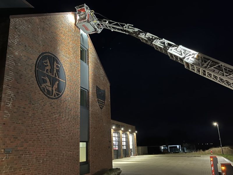 Unter der Führung von Oberfeuerwehrmann Johann Weers bauten die Kameraden David Schuler und Menno Kannegieter ein Gestell, welches von Focko Kannegieter geschweißt wurde auf die Giebelspitze. Somit schmückt dieses tolle, besondere Geschenk nun den höchsten Punkt des Gebäudes.