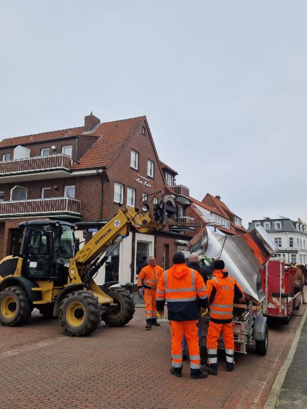 Bei dem Kunstwerk handelt sich um eine Pionierarbeit von Bunk für das Projekt „Mülltrennung und Verwertung auf der Insel Juist“, wofür er mit dem Otto-Leege-Institut Vorreiter war. Daher war es für die Mitarbeiter des heutigen Reststoffhofes am Hafen auch selbstverständlich, bei der Aufstellung zu helfen. Unter den Augen von Hans-Georg Peters vom Heimatverein wurde die Niroskulptur per PKW-Anhänger angeliefert und durch Radladerfahrer Klaus Rippe vorsichtig abgeladen und an der vorgesehenen Stelle abgesetzt.