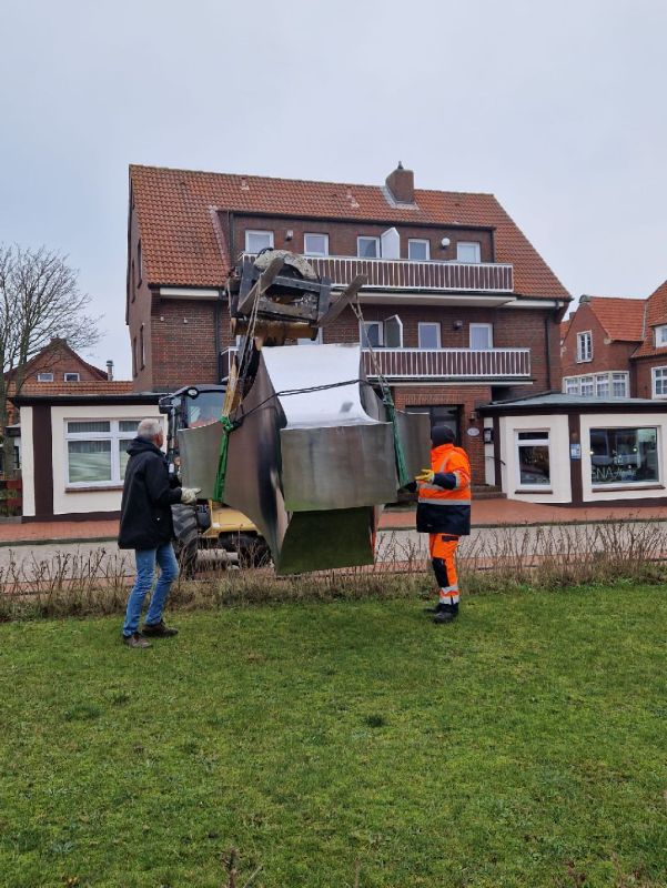 In der vergangenen Woche gab der Rat grünes Licht und genehmigte einen Antrag vom Heimatverein Juist auf Überlassung der nördlichen Rasenfläche in der Wilhelmstraße/Damenpfad neben dem Schuhhaus Janssen, weil man dort gerne eine Skulptur des ehemaligen Juister Künstlers Bernd K.F. Bunk ausstellen wollte. Jetzt steht diese bereits an Ort und Stelle.