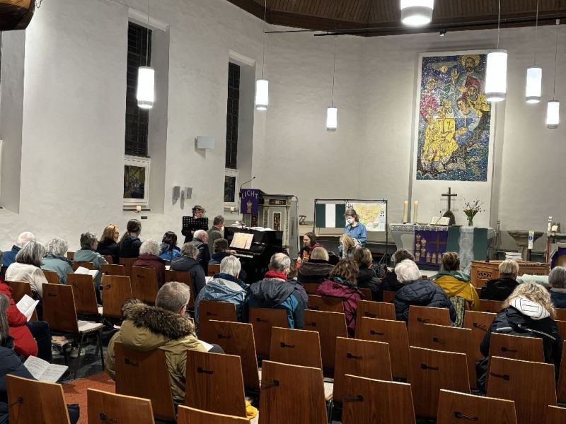 Eine Mischung aus deutschen, englischen und afrikanischen Liedern begleitete die Geschichten. Jato, die Mutter einer 14jährigen Tochter, machte deutlich, wie gespalten das Land in Teilen ist. Sie lebt im Norden Nigerias als Christin unter vielen muslimischen Nachbarn. Während in anderen Regionen Menschen unterschiedlicher Religionen friedlich zusammenleben, bangt sie jeden Tag um die Sicherheit ihrer Tochter. Ihre Sorgen werden in über 150 Ländern verlesen und bekommen eine Stimme.