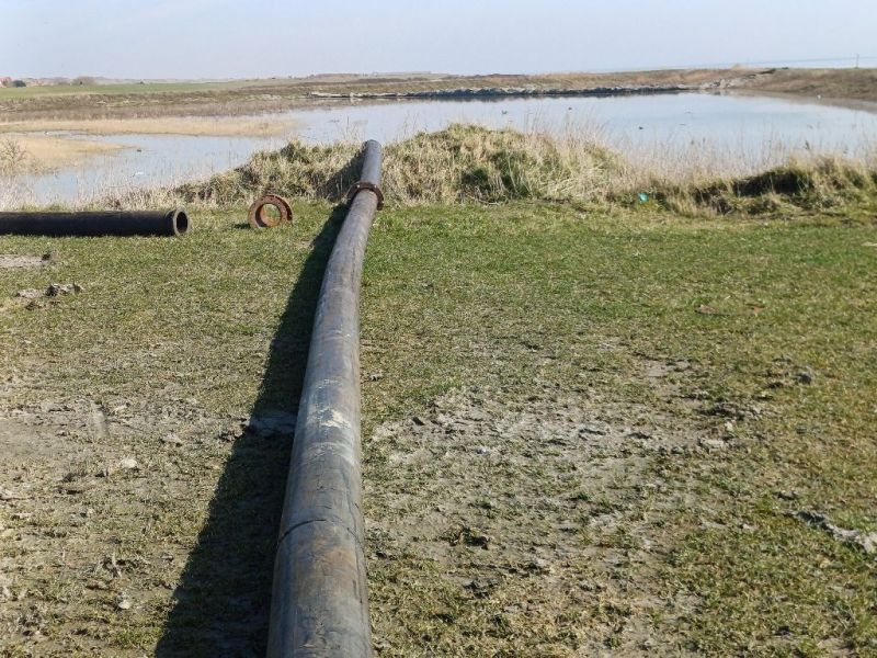Unsere Fotos zeigen das Heck des Spezialschiffes „Catjan“, vorne am Ausleger des Baggers befindet sich der Saugkopf für die Schlickentnahme. Weitere Bilder entstanden am Spülfeld, welches sich nördlich der Fläche befindet, wo im Sommer die Surfschule ihren Standort hat. WARNUNG: DAS BETRETEN DES SPÜLELDES IST LEBENSGEFÄHRLICH UND VERBOTEN!