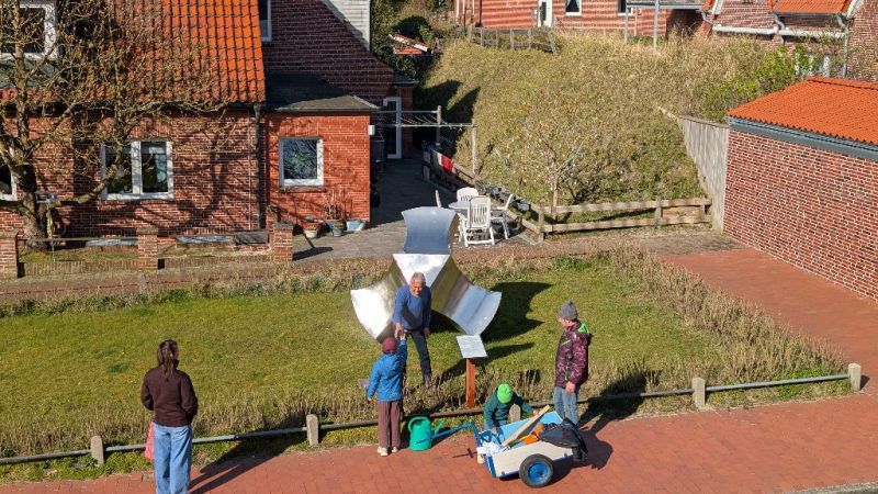 Etwas weiter gen Westen fand eine kleine Baumaßnahme auf der Rasenfläche an der Ecke Wilhelmstraße/Damenpfad statt. Hier wurde im vergangenen Winter bereits eine Skulptur des ehemaligen Juister Künstlers Bernd F. K. Bunk aufgestellt (JNN berichtete), in der vergangenen Woche wurde durch Hansgeorg Peters vom Heimatverein Juist ein entsprechendes Infoschild zu dem Kunstwerk aufgestellt. Hier erfährt man alles Wissenswerte über das Kunstwerk und seinem Erbauer.