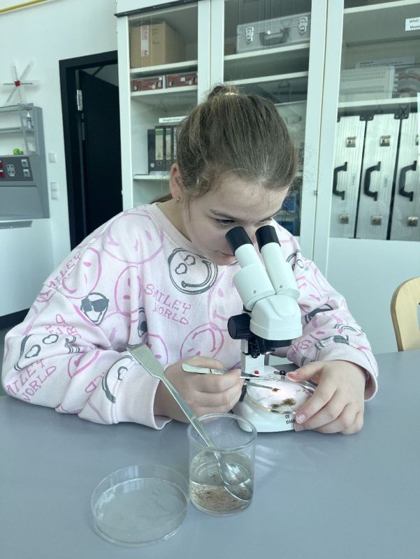 Derweil eigneten sich die Klassen 3-10 neues Wissen über verschiedene Formen von Energien im Energie Erlebnis Zentrum (EEZ) an. Die Klasse 3/4 partizipierte an dem Experiment „Wasser ist Leben“ und sammelte erste Erfahrungen im Mikroskopieren. Eine geführte Rallye durch die Ausstellung erlebten die Klassen 5-8 und die Klasse 9/10 nahm an einer Führung durch die Werkstätten von Enercon teil.